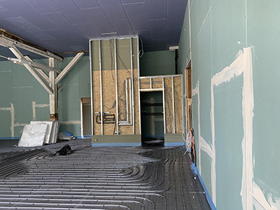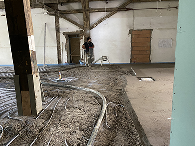 15.07.2021 Fußbodenheizung und Estricharbeiten im Veranstaltungsraum des Kühschiffs. |