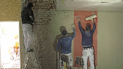 Verputzarbeiten mit neuen Simsen auf der Nord- und Westseite des Malzhauses. |