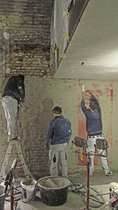 15.11.2019 Elektroarbeiten im Brauhaus (links) und Verputzarbeiten am Malzhaus (rechts). |