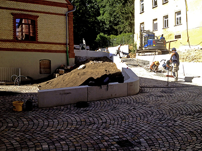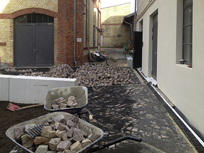 18.08.2020 Pflaster- und Einfassungsarbeiten an der Abfahrt zum Malzhaus und zwischen Sudhaus und Mühlengebäude. |