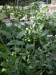 19.08.2020 Die am "Amphitheater" oberhalb des Parkplatzes aufgeschüttete Erde war offensichtlich voller Tomatensamen: Überall wachsen nun völlig ohne Pflege die Sträucher, und sie sind bereits über und über mit Früchten behängt ... |