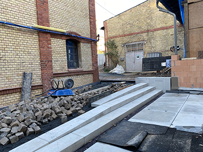 Der Bereich vor dem Haupteingang des Künstlervereins wird gepflastert. |