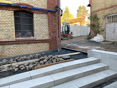 Fertiggestellte Oberflächen zwischen Sudhaus und Brauhaus. |