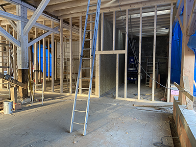 12.11.2020 Holzständerkonstruktion für die Zwischenwände im Kühlschiff. |