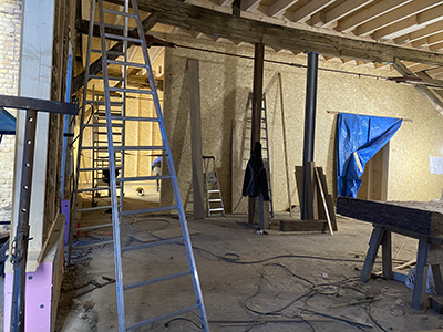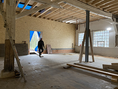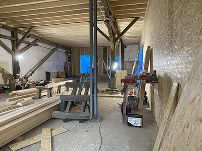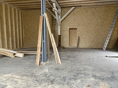 15.12.2020 Holzbau im späteren großen Veranstaltungsraum des Kühlschiffs. |