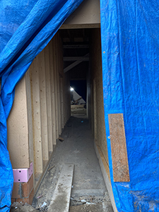15.12.2020 Beplankung der Holzständerkonstruktion in einem der Lager im Kühlschiff. |