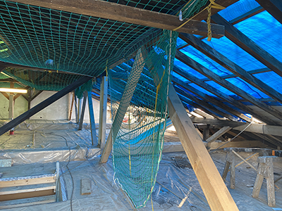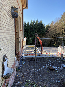 03.03.2021 Einrüstung der Giebelfassade des Pferdestalls. |
