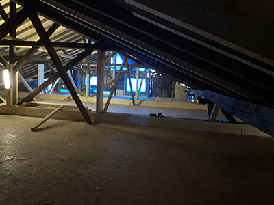 Viel ungenutzter Raum auf dem Dachboden des Kühlschiffs. |