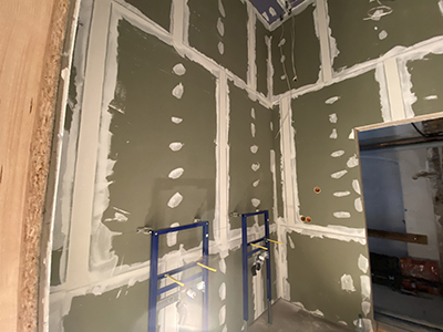 Erste Installationen in den WC-Anlagen der Veranstaltungsräume im Kühlschiff. |