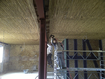 26.04.2018 Anbringen von Schilfmatten im Hochparterre des Südflügels als Vorbereitung für das Aufbringen des Deckenputzes. |