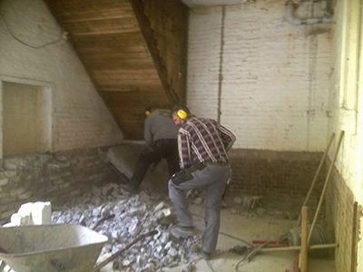 Abbrucharbeiten im Turm. |
