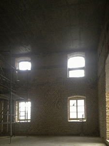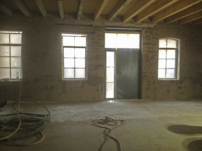 07.12.2018 Trocknender Wandputz im künftigen Malzhaus-Atelier und Putzarbeiten im Ausstellungsbereich des Malzhauses. |