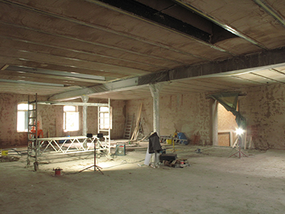 Putz- und Trockenbauarbeiten im künftigen Atelier im EG Malzhaus. |