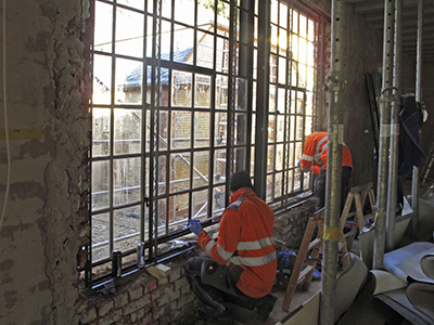 25.02.2019 Einbau des neuen großen Fensters im Obergeschoss des Malzhauses. |