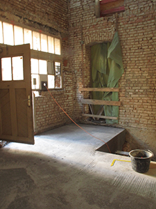 04. + 06.03.2019 Erdgeschoss Malzhaus: Der Durchgang zwischen späterem Atelier und großem Veranstaltungssaal wird zugemauert (links). Rechts: Blick in den Veranstaltungsraum. |