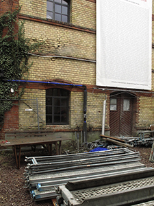 10. + 11.03.2019 Das Gerüst an der Nordseite des Brauhauses ist abgebaut und wurde äußerst sinnvoll mitten vor dem Zugang zum Künstlerverein abgelagert. |