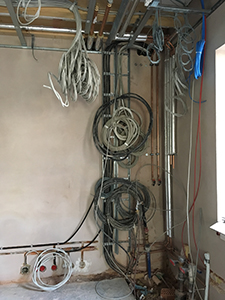 24.04.2019 Verkabelungen im Veranstaltungsraum des Malzhauses. Hier wird nicht nur Strom verlegt, sondern auch Video- und Audiokabel mit Wand- und Deckenauslässen. |