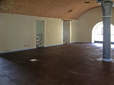 04.06.2019 Das Obergeschoss des Sudhauses. Der Boden ist vorbereitet für die letzte feine Schicht des Fußbodenestrichs. |