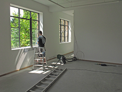 19.07.2019 Kurz vor der Übergabe an die künftige Mieterin: Letzte Reinigungsarbeiten im Malzhaus-Atelier. |